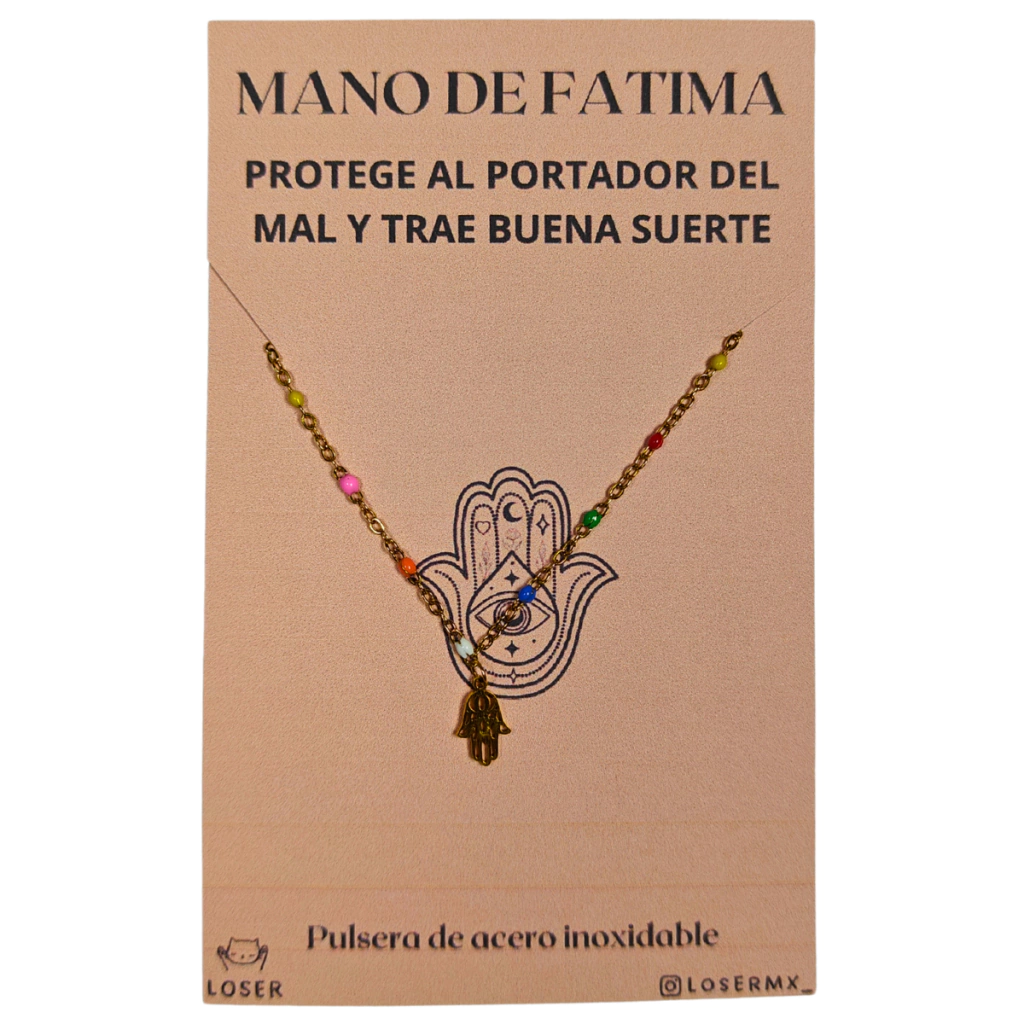 Lleva esta pulsera con el símbolo de la Mano de Fátima (Hamsa) en acero inoxidable, un talismán ancestral que atrae protección, buena suerte y energía positiva. Ideal para quienes buscan un accesorio con significado espiritual y estilo.